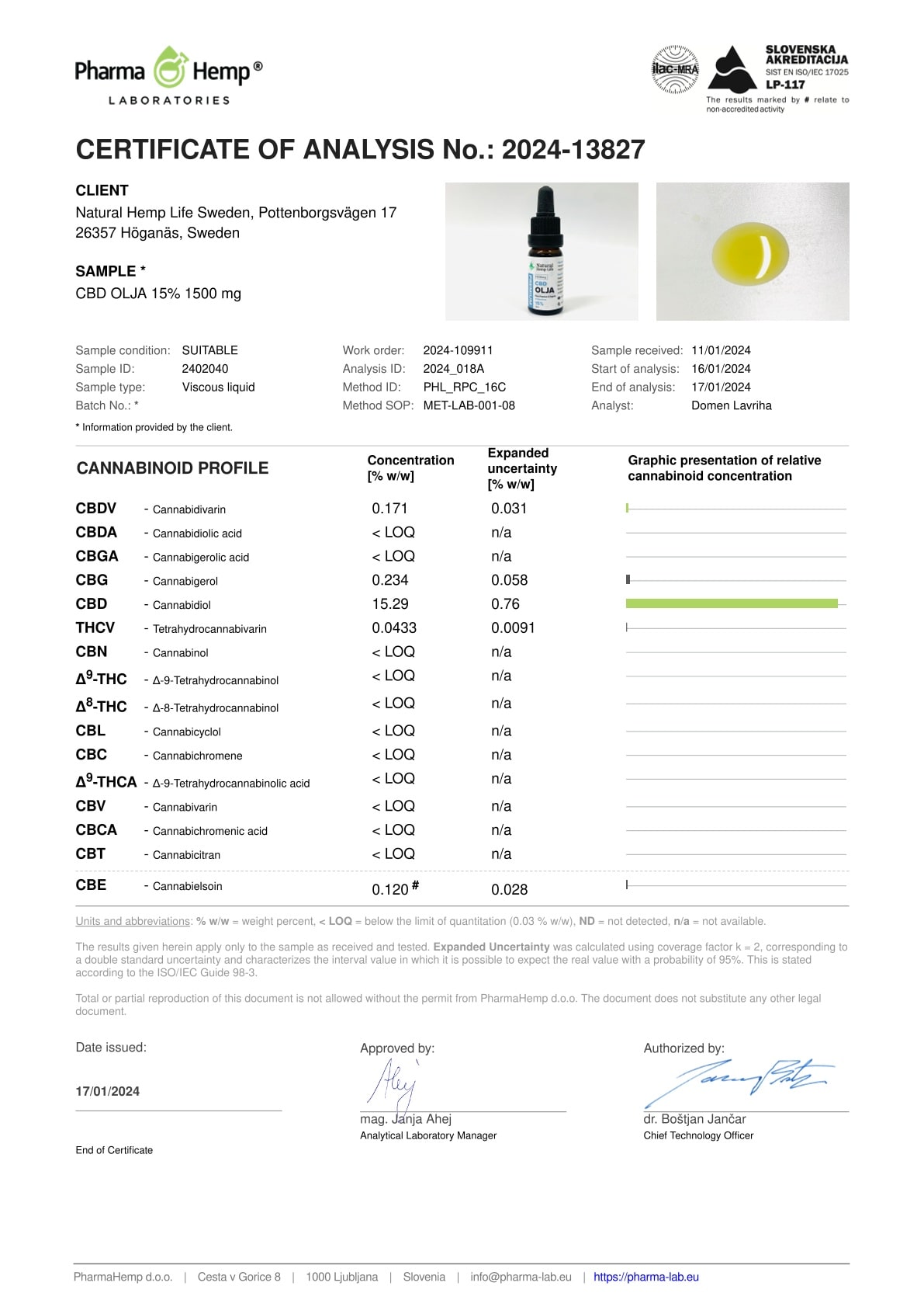 Vi har valt att använda kokosnötsolja med 100% MCT-fettsyror som bärare, vilket garanterar en produkt av högsta standard. Natural Hemp Life CBD produkter framställs och tillverkas i en av Europas bästa anläggningar för CBD-tillverkning. Anläggningen besitter alla ISO-certifikat för renlighet, miljömedvetenhet, hållbarhet, arbetsmiljö och dessutom energieffektivisering – allt för att ta fram produkter av mycket hög kvalitet.