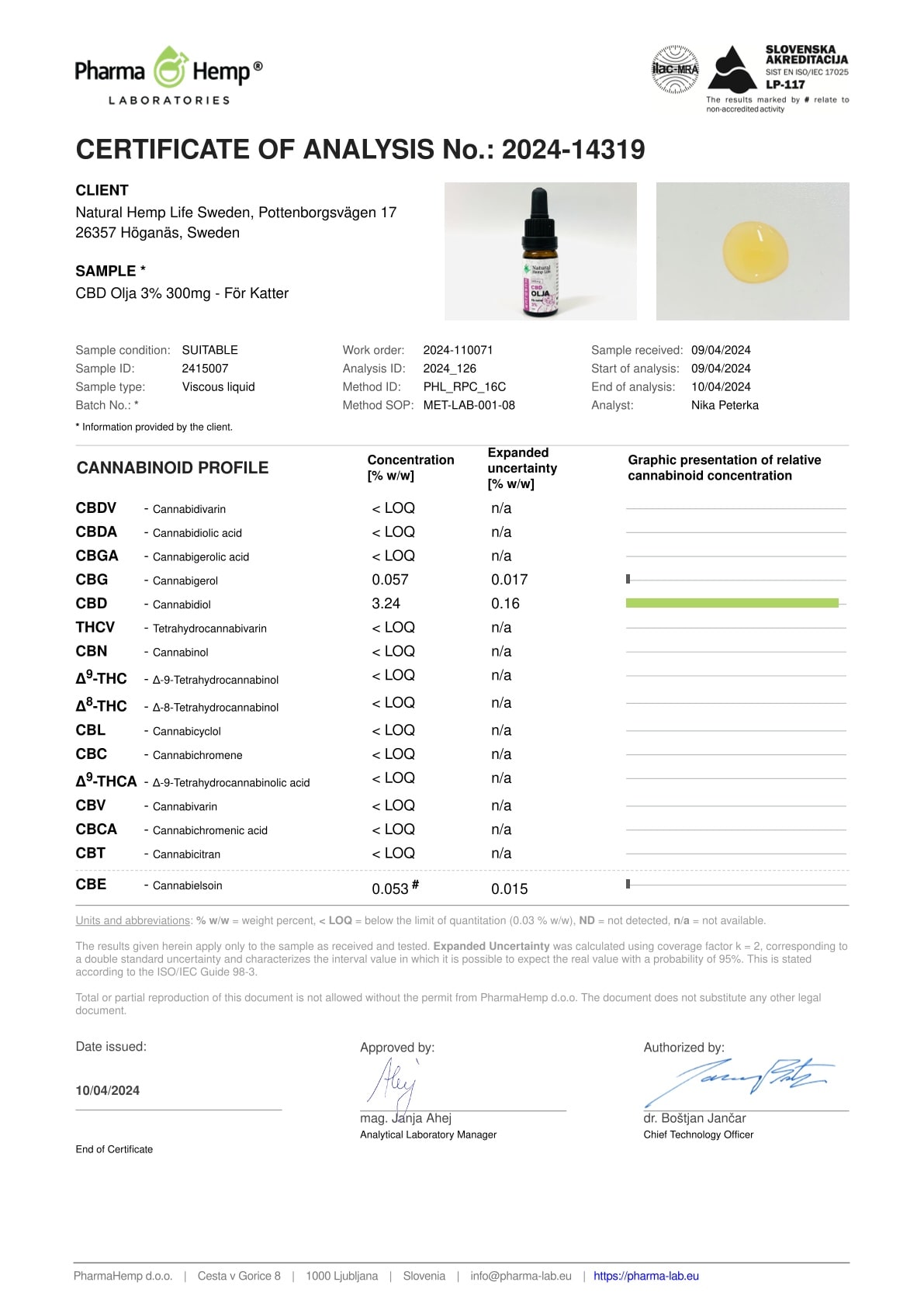 Tack vare våra tester från utomstående parter kan vi garantera att vår CBD är helt fri från skadliga gifter och därmed säker för ditt husdjur – Tillverkad med endast 100% ekologiska och naturliga ingredienser, helt utan THC. Läs mer.