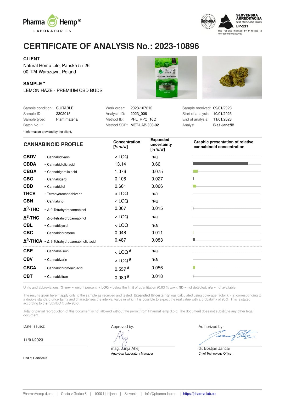 Med en passion för orörd natur och innovativ teknologi säkerställer vi att alla produkter följer gällande lagar och regelverk. Samtliga produkter genomgår utförliga tester av tredjepartslaboratorium som försäkrar att THC-nivån i produkten inte överstiger 0.2%. Generna i Lemon Haze härstammar från en sativa-indica hybrid. Alla blommor i Natural Hemp Lifes sortiment har ett fullt spektrum av cannabinoider, terpener och är tillverkade av EU-godkänd industrihampa. Denna sort är helt fri från genetiskt modifierade organismer (GMO). I påsen finner du en fuktregulator som garanterar att fuktigheten ständigt är 62%.