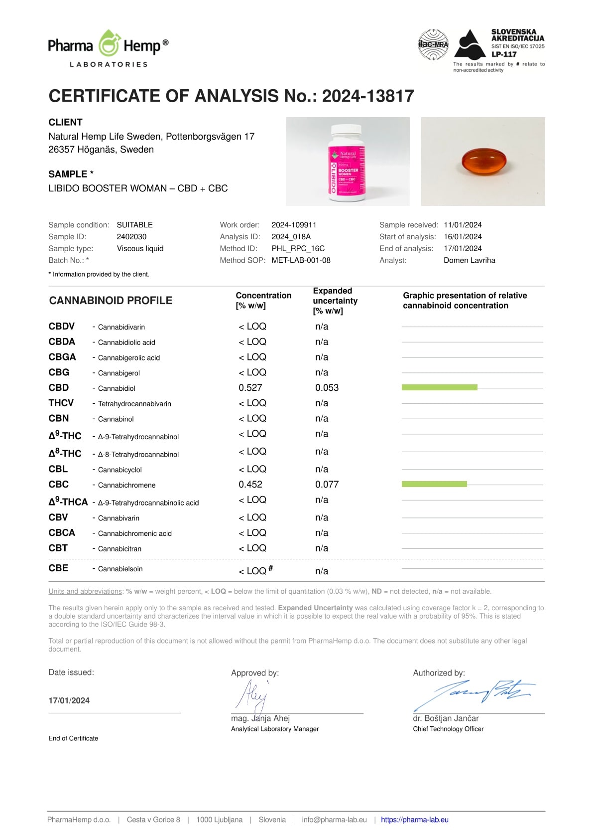 - CBC från industrihampa – 10 mg: Kan fungera smärtlindrande och inflammationshämmande, särskilt användbart för menstruationssmärtor. Bidrar också till att bibehålla slemhinnorna i balans.