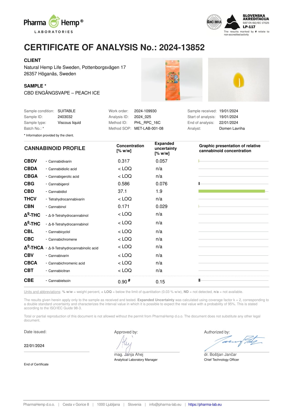 Vår Peach Ice CBD engångsvape är mer än bara en smakupplevelse; den är en resa till balans och lugn. Perfekt för att lindra stress eller bara njuta av en stund för dig själv. Och med 400 mg CBD per enhet kan du vara säker på att du får den höga kvalitet du förtjänar.