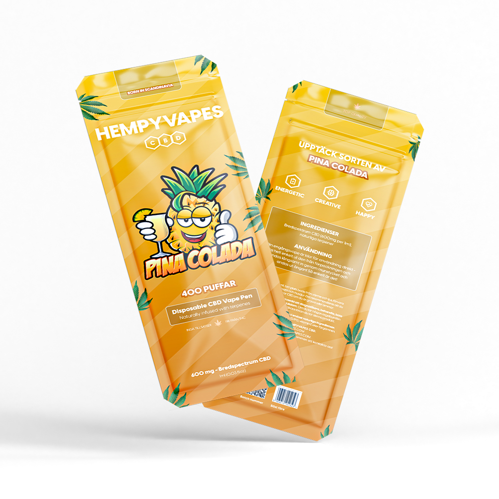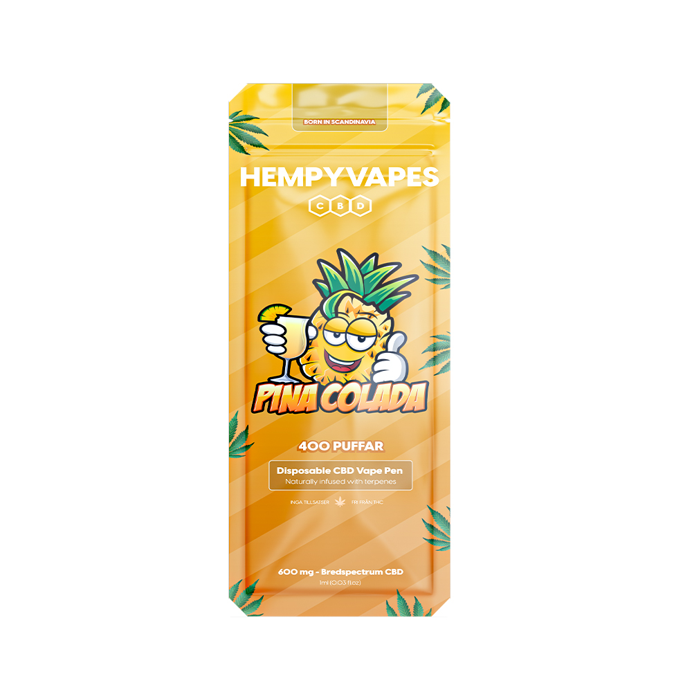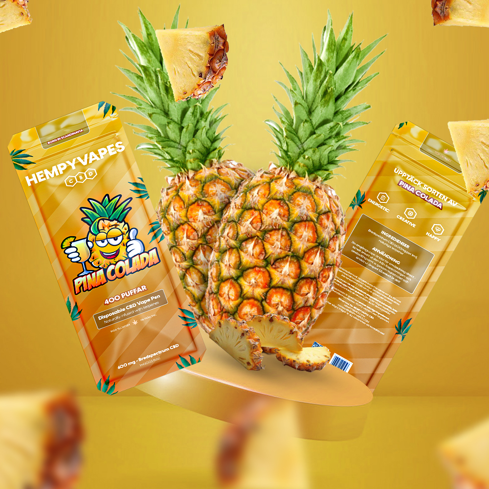 Saftig ananas möter krämiga kokosnötter i en allt för perfekt bladning. En vape som ger en smak av sommar oavsett väder! Pina Colada CBD engångsvape innehåller över 80% CBD och andra cannabinoider i en lätt och smidig enhet.